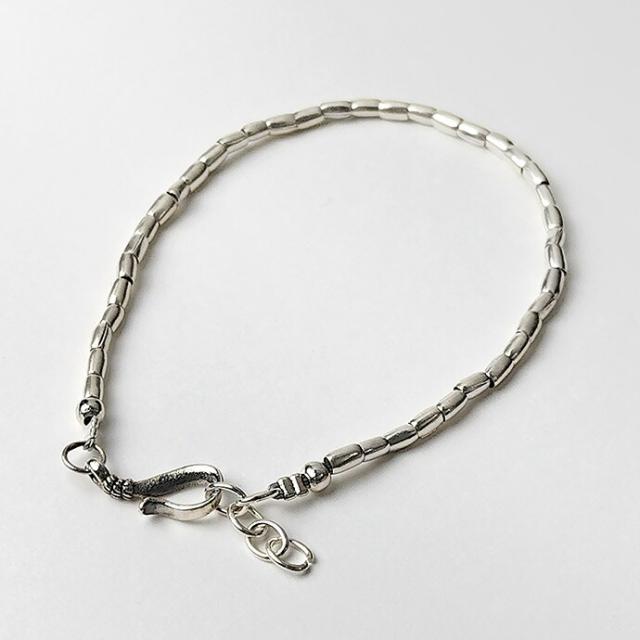 カレンシルバーブレスレット メンズ パイプビーズ 一連 シルバー950 細め シンプル ネイティブ 民族風 エスニック bab-5703