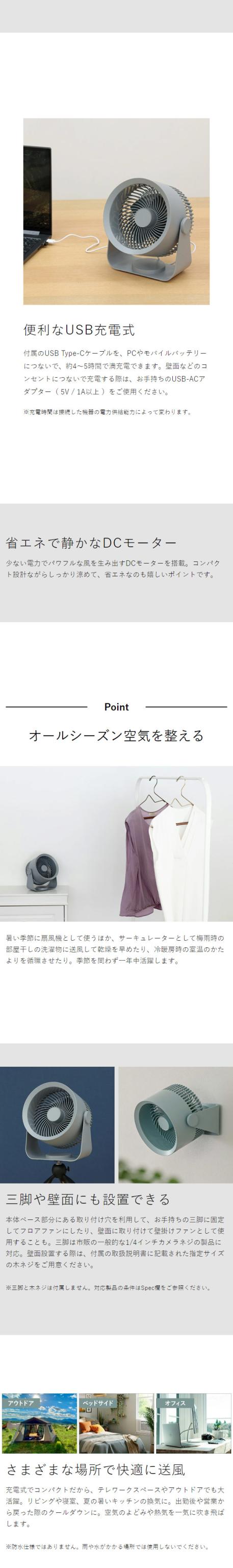 コンパクトでも大風量な卓上サイズの軽量USB小型ファン。ネジを使って壁掛け扇風機、三脚に取り付けフロアファンと3wayの使い方ができるサーキュレーター。DCモーター搭載で省エネ◎。