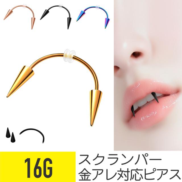 カラー スクランパー 16G サージカルステンレス 金属アレルギー 対応 口ピアス 軟骨ピアス ボディピアス キバ 牙 コーン コスプレ
