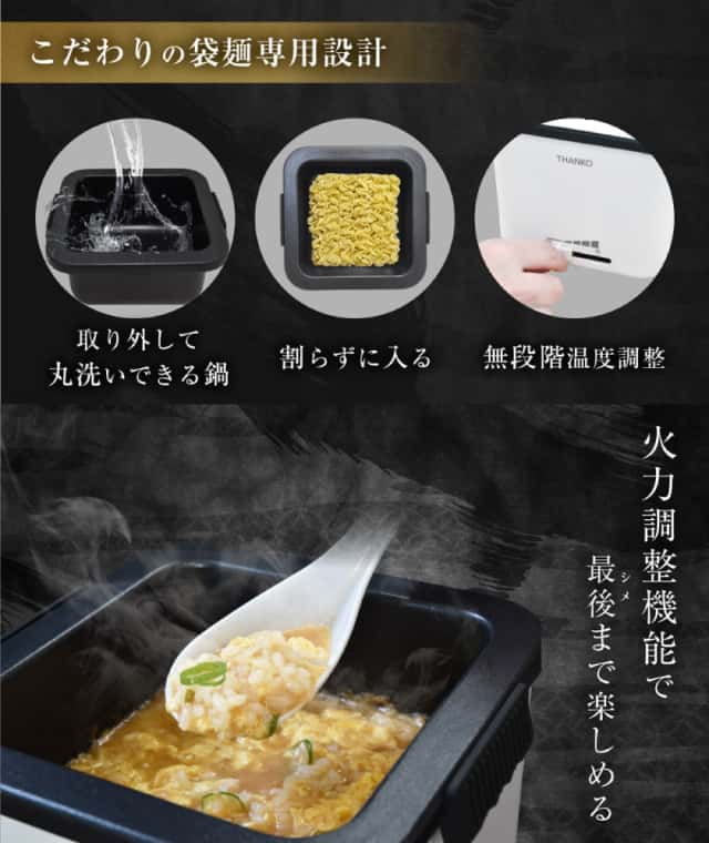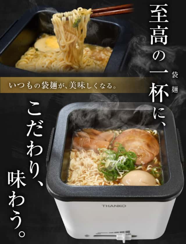 好きな具材を入れて自分だけの袋麺を美味しく楽しめる、一人用電気ラーメン鍋。
