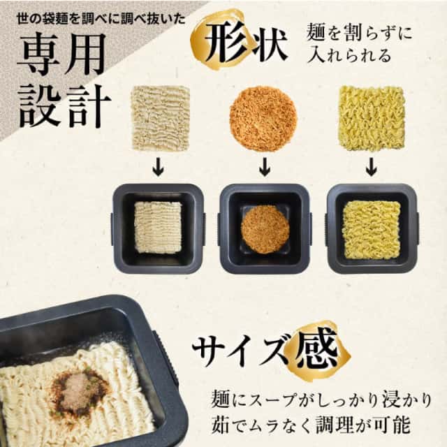 あらゆる種類の袋麺を割らずに入れられるサイズ設計、火力や保温性にもこだわり抜きました。