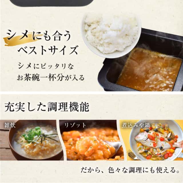 底に満遍なく熱が広がるような熱源、釜の大きさなども調理に最適な設計となっています。