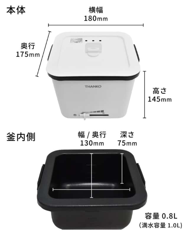 | サイズ | 本体:幅180×高さ145×奥行175(mm) |