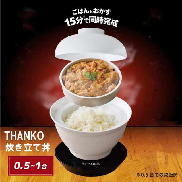 サンコー 2段式どんぶり型超高速炊飯器 炊き立て丼 時短ご飯 ひとり暮らし 簡単調理 炊き立てごはん 食器洗浄機可 炊飯容量0.5〜1合 THANKO DNBRRCSWH