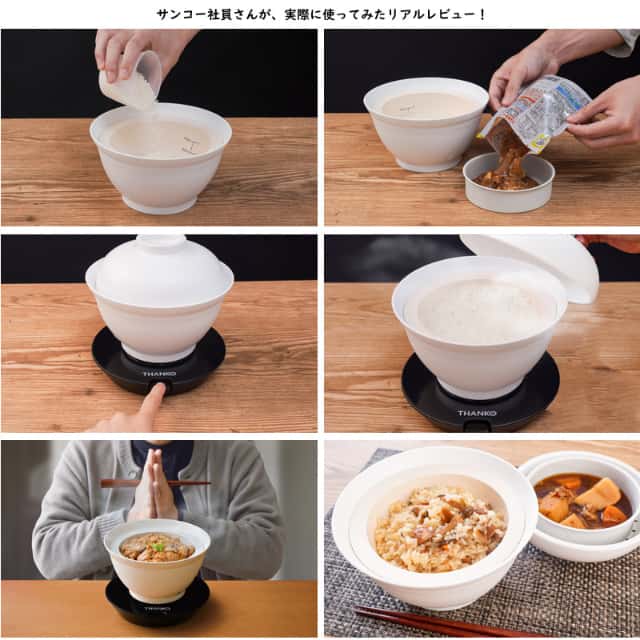 サンコー 2段式どんぶり型超高速炊飯器 炊き立て丼 時短ご飯 ひとり暮らし 簡単調理 炊き立てごはん 炊飯容量0.5〜1合 THANKO DNBRRCSWH