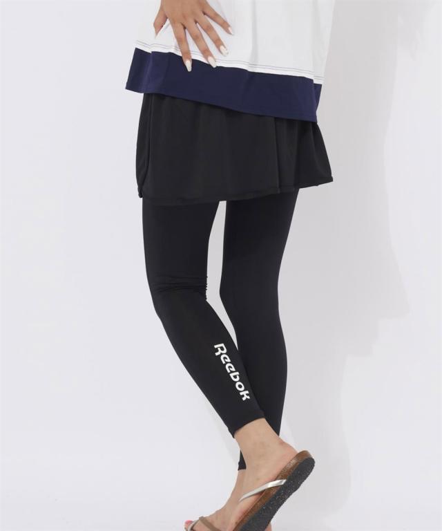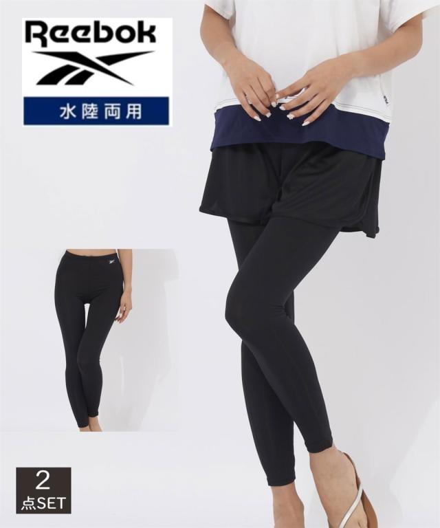 【Reebok】水陸両用 2点セット! ■デザイン 水着としてはもちろん、フィットネスウェアや日常のカジュアルなスポーツシーンにも対応する、水陸両用デザインの2点セットです。セット内容は、ショートパンツとロング丈レギンス。ショートパンツは、ヒップ周りや太ももを自然にカバーし、体型を気にせずアクティブに動けるよう設計されています。レギンスは脚のラインに心地よくフィットし、運動時の動きを妨げません。 ■素材 メイン素材には、水に濡れても乾きやすく、軽量なポリエステルを使用しています。 ショートパンツはポリエステル100%で、さらりとした肌触りをキープ。レギンス部分は、ポリエステル90%、ポリウレタン10%の混紡素材を採用することで、優れた伸縮性とストレッチ性を実現。水中での激しい動きや、ヨガなどの柔軟性が求められる運動でも、身体にしっかりフィットしながらもストレスフリーな着心地を提供します。 ■機能 「水陸両用」 ・速乾性: 水から上がった後や、汗をかいた後でも素早く乾き、不快なべたつきを軽減します。 ・ストレッチ性: ポリウレタン混紡のレギンスが、高い伸縮性を発揮し、あらゆる動きに追従。