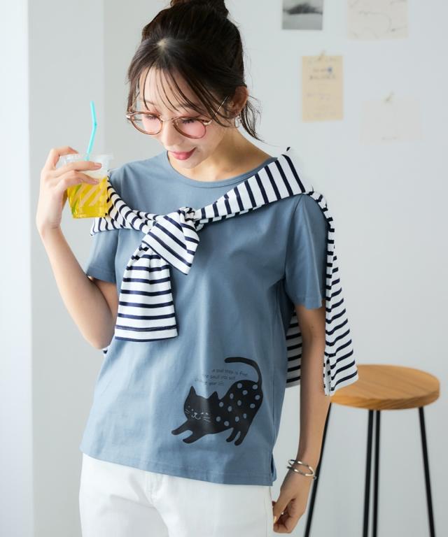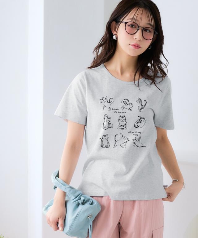 Tシャツ カットソー レディース 綿100% プリント 接触冷感 UVカット 選べる柄 夏 S/M/L/LL ニッセン nissen