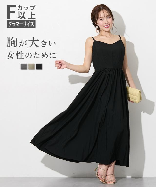 ワンピース ロング マキシ レディース 大きい胸専用 丈 キャミ ポケット付 ひざ下 S/M/L