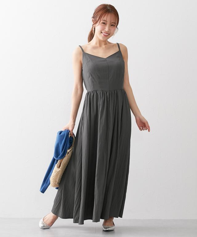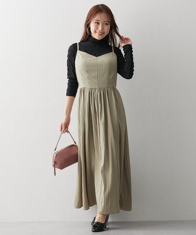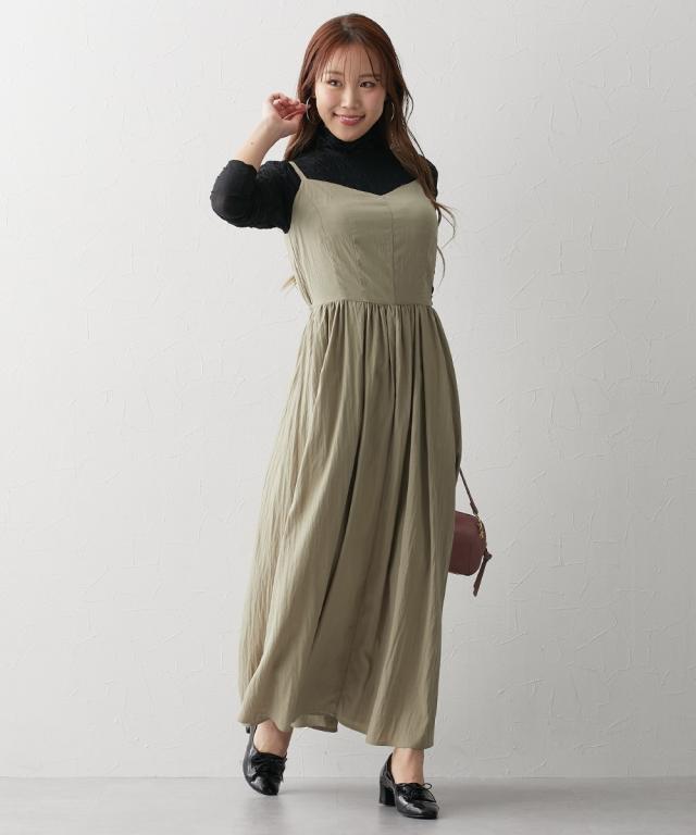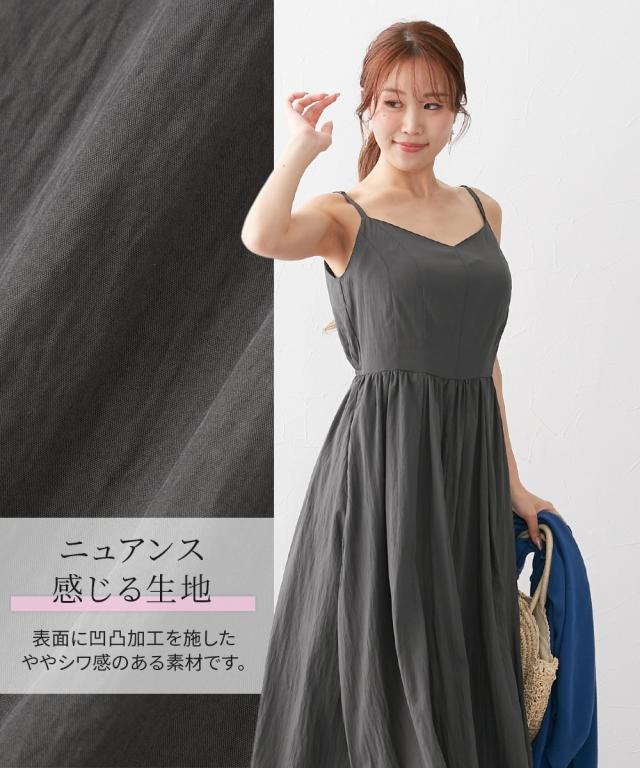 ワンピース ロング マキシ レディース 大きい胸専用 丈 キャミ ポケット付 ひざ下 S/M/L ニッセン nissen