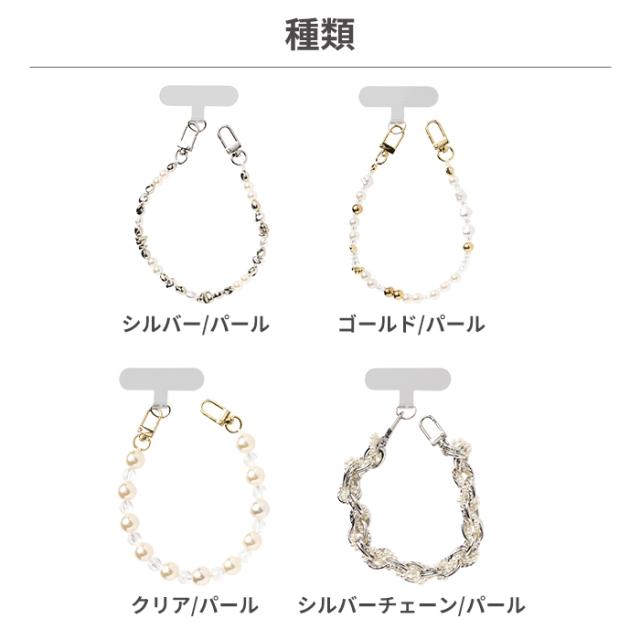 パール ビーズ チェーン ゴールド シルバー ストラップ 携帯 ハンド 手首 かわいい おしゃれ トレンド 韓国 平成 レトロ iphone スマホ 金 銀 落下防止