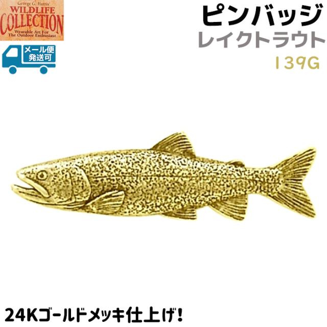 ピンバッジ レイクトラウト 139G 24K ゴールド メッキ 4.5×1.2cm イワナ 魚 ピンズ バッチ メンズ スーツ 襟 おしゃれ かわいい アクセ ブローチ バッジ バッヂ キャッチ 留め具 メール便発送可 ポイント消化 クリスマス ギフト