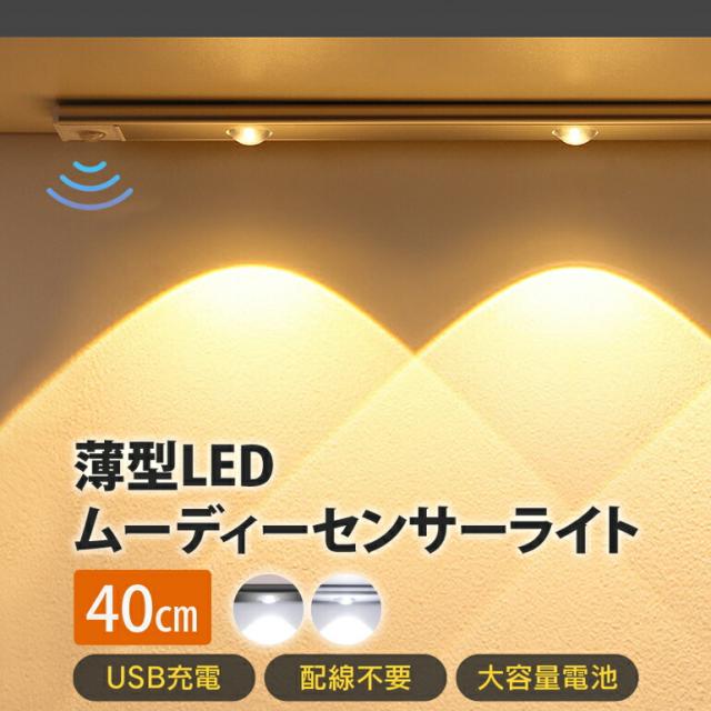 センサーライト 薄型 LED ムーディー 【40cm】 人感センサーライト ledライト 充電式 ledセンサーライト 工事不要 マグネット 屋内 足元灯 常夜灯 色調整可能 モーション 玄関 非常灯 3モード調整 キッチン 台所 多目的灯【1601】