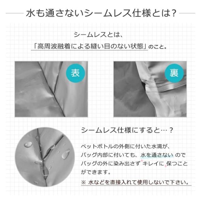 鞄の外側に水分が染み出さないので、お気に入りの服も濡らさず、鞄もキレイ!