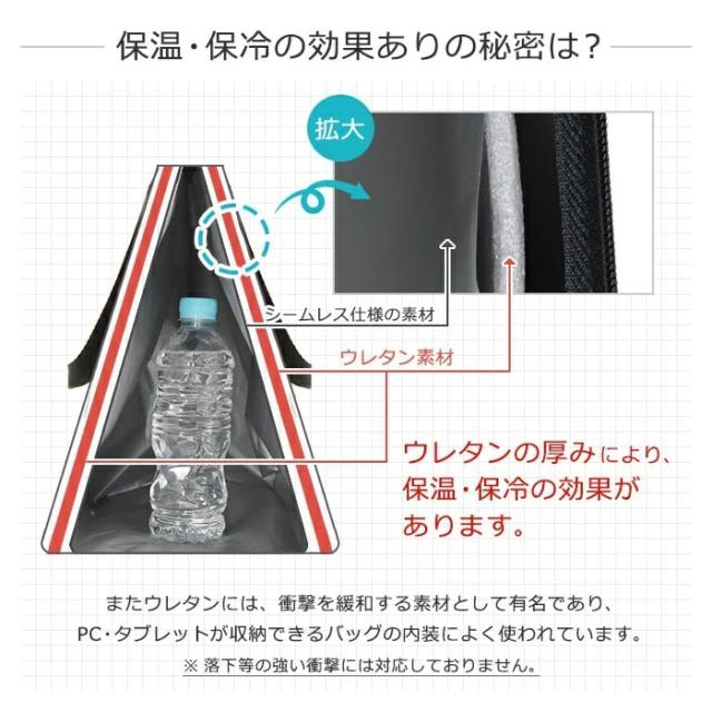 厚手の断熱材入りで、保温・保冷の効果が抜群。