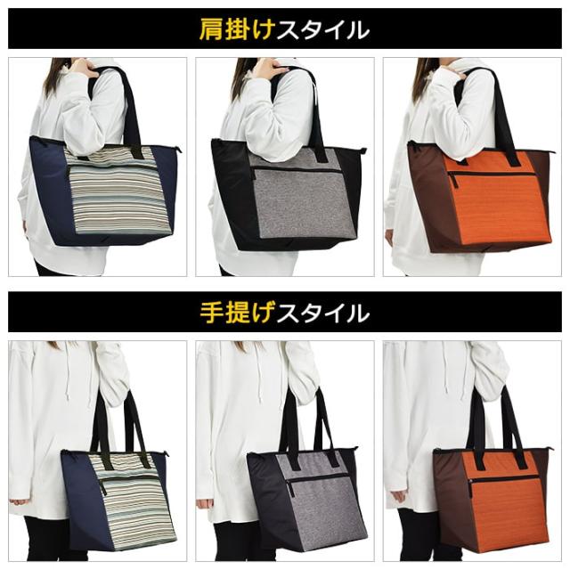 氷を直接入れても水漏れしないシームレスの設計のトートバッグ。 鞄の外側に水分が染み出さないので、お気に入りの服も濡らさず、鞄もキレイ! 約400gと軽量で折りたためばコンパクトになり、イベントにも最適です◎ 厚手の断熱材入りで、保温・保冷の効果が抜群。 キャリースリーブ付きで、カート類にも固定しやすい。 【ご注意】 ※ショッピングカートフレームはついていません。 ※開口部ファスナーは防水ではありません。 ■サイズ:横幅30cm×高さ34cm×厚み22cm ■本体開口部:約52cm ■対応サイズ:A4ファイル(32.3cm×24.0cm) ■容量:約17リットル ■重量:約400g ■素材:ポリエスター ■カラー:03-紺/ストライプ、12-黒/グレー、17-茶/オレンジ ■生産地:中国製 (企画:日本) ■ブランド:VALENTINO VISCANI (ヴァレンチノヴィスカーニ) ■仕様:[正面]ファスナーポケット、[背面]キャリーバー通し ■その他:底面にフレーム固定用マジックテープ留め付き ※ 商品のデザイン・仕様は予告なく変更する場合がありますのでご了承ください。 [2407r] |