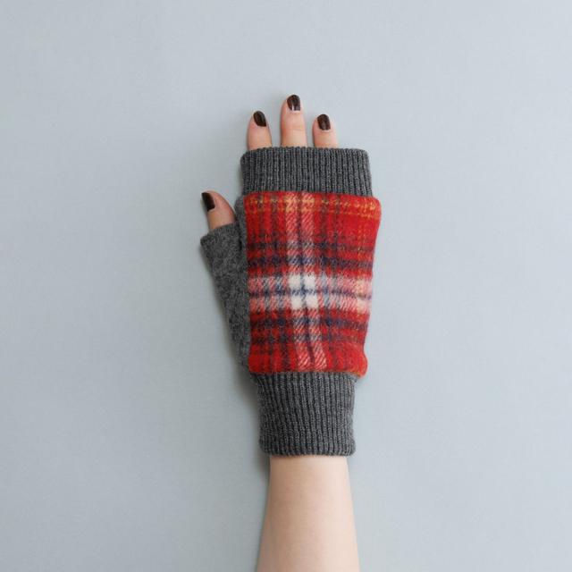 KURODA クロダ 女性用 タータンチェック フィンガーレスグローブ 手袋