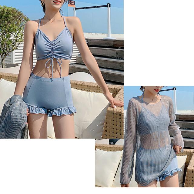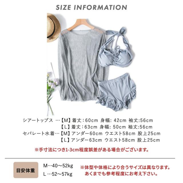 水着 レディース シアートップス シアー 体型カバー 3点セット 大人 ビキニ フリル 可愛い かわいい 二の腕カバー クロップド ショートパンツ セット シンプル ホルターネック 背中 韓国 高校生 ティーンズ ティーン 透け 海 黒 セパレート ママ 長袖 上着 即日