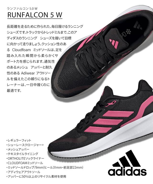 アディダス レディース ランファルコン ランニングシューズ スポーツ 運動靴 トレーニング 陸上 トラック メッシュアッパー adidas RUNFALCON 5 W 黒 ブラック 赤 レッド JI3389 JR3093 JR5090
