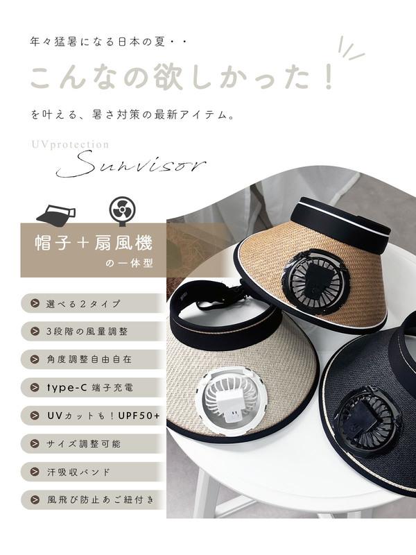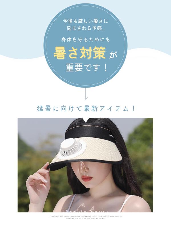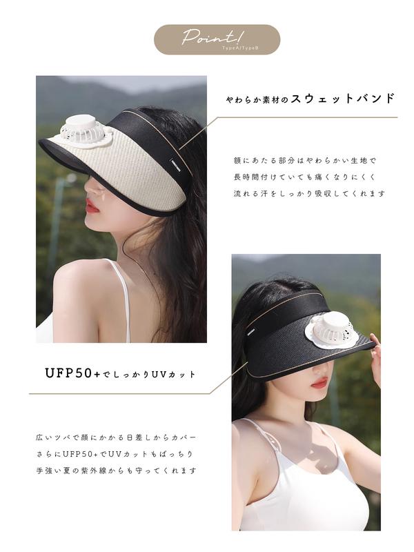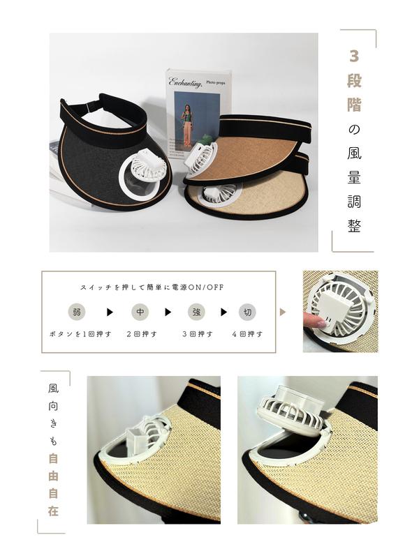 ファン付きサンバイザー 帽子 レディース サンバイザー UV対策 UVカット 紫外線対策 夏 あご紐 折りたたみ 日よけ 野外 公園 送迎 園芸 畑 外遊び 扇風機 USB充電 麦わら 軽量 日焼け防止 つば広 自転車 プレゼント ギフト