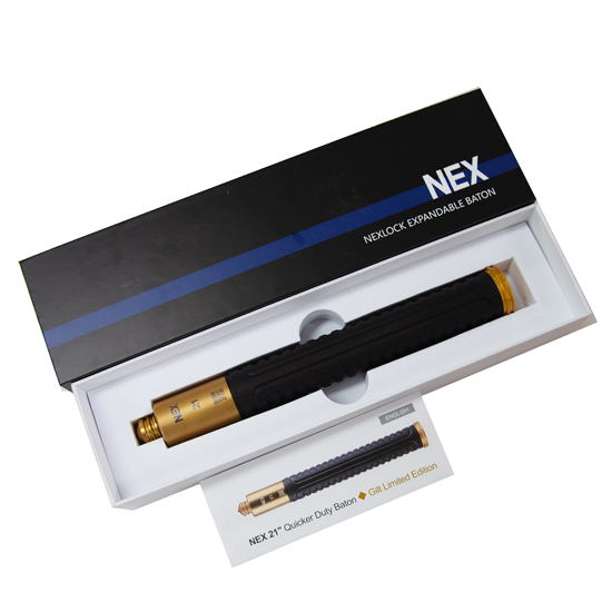 N21C QUICK STEEL GIFTは当初NEXTORCH社30周年記念モデルとして製造されたバトンです。今ではギフト用バトンとして特別な塗装を施して販売しています。 全長約50cmの長さを持つ三段式のオートロックバトンです。エアウエイト型と違ってクロームモリブデン鋼のみを使用したバトンになりますので、重量があることで叩いた時の破壊力も大きくなります(先端チップのみはアルミ合金を使用しています)