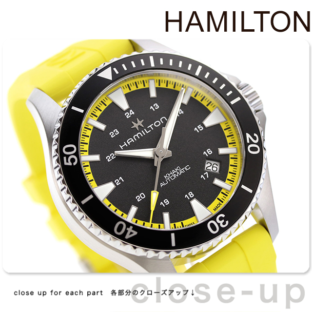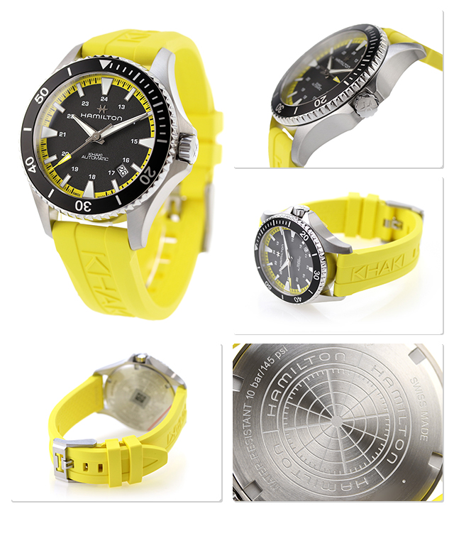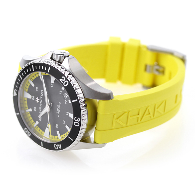 ハミルトン カーキ ネイビー スキューバ オート 40mm 自動巻き 腕時計 ブランド メンズ レディース HAMILTON H82395332 アナログ ブラック イエロー 黒 スイス製