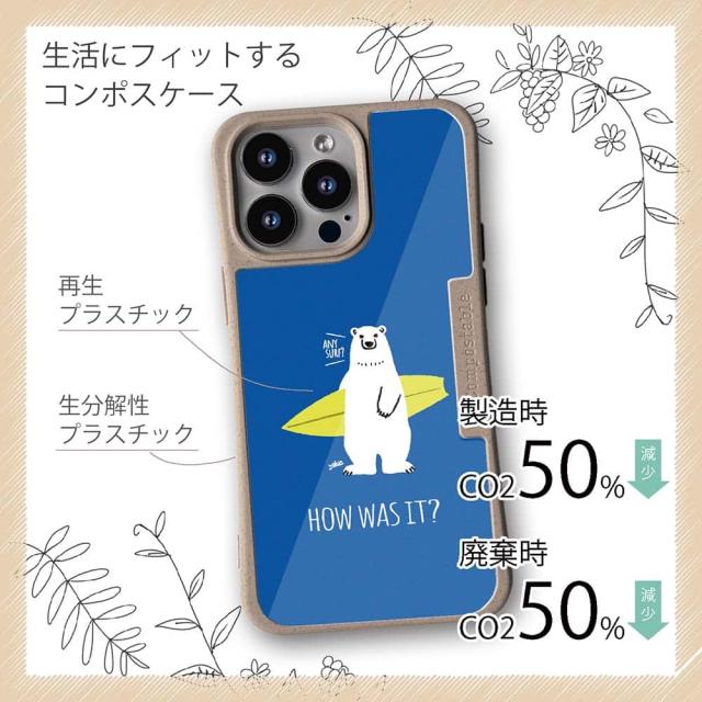 | 商品説明 | コンポスケースは、環境負荷低減を目的に開発されたスマホケース。従来のスマホケースと比べ、CO2排出量を50%削減できます。しかも、循環型社会に対応した素材を使ったケースです。 フレームカラーが4色からお選び頂けます。※コンポスケースとデザインシートが1つずつのセット商品となります。商品画像の15枚目と16枚目は、スマホの背景色によるサンプルです。ケース自体の背面は透明なので、スマホの背面色によってこのような色になるという例です。背景の色が選べる訳ではありませんので、予めご了承下さいませ。 夏といえば海!海といえばサーフィン!?・・・ってことでサーフボードを持ったシロクマさんです。「波どうだった?(How was it?)」と声が聞こえてきそうです。 デザイナー/wakat ![]() |