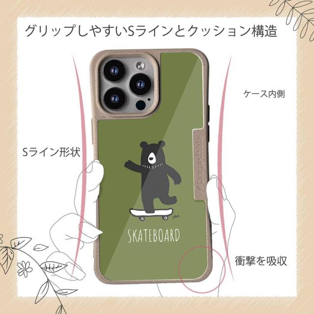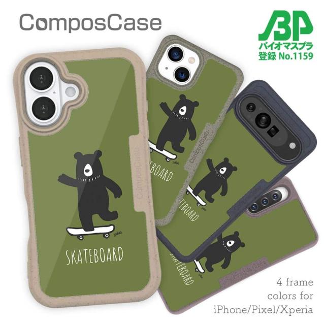 コンポスケース & 着せ替え デザインシート セット iPhone16e ケース iPhone16 Pro iPhone16 iPhone15 Pro iPhone15 iPhone14 Pro iPhone14 iPhone13 熊 クマ スケボークマさん(wakat)