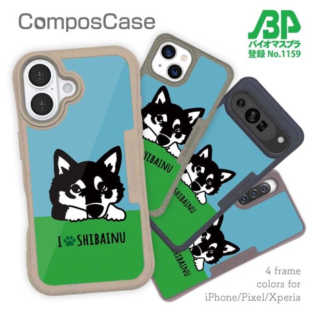 コンポスケース & 着せ替え デザインシート セット iPhone16e ケース iPhone16 Pro iPhone16 iPhone15 Pro iPhone15 iPhone14 Pro iPhone14 iPhone13 犬 イヌ 柴犬(黒柴)の可愛さアピール(wakat)