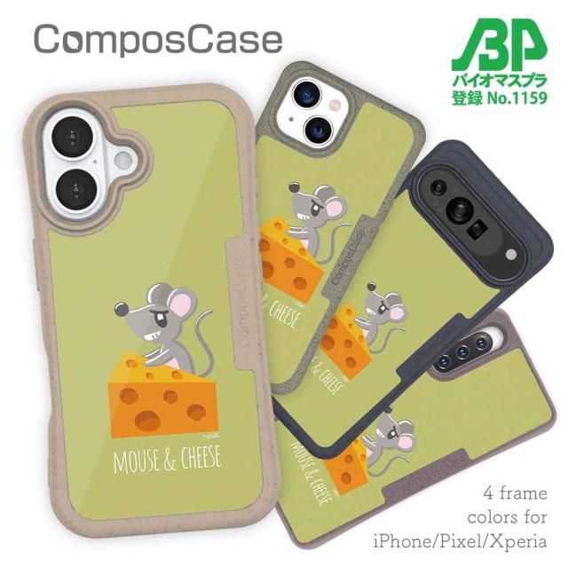 コンポスケース & 着せ替え デザインシート セット iPhone16e ケース iPhone16 Pro iPhone16 iPhone15 Pro iPhone15 iPhone14 Pro iPhone14 iPhone13 チーズ好きなネズミくん(wakat)