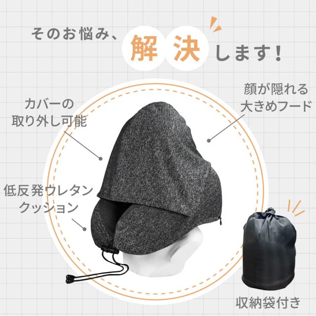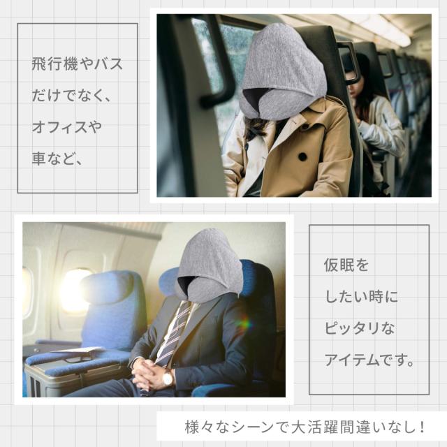 ネックピロー 低反発 フード 首枕 飛行機 車 旅行 トラベルグッズ 携帯枕 旅行グッズ 車用品 便利グッズ 車 グッズ 快眠 仮眠 枕 肩こり 在宅 休憩 トラベルピロー 洗える テレワーク 人気 旅行 おすすめ プレゼント クリスマス pillow-03