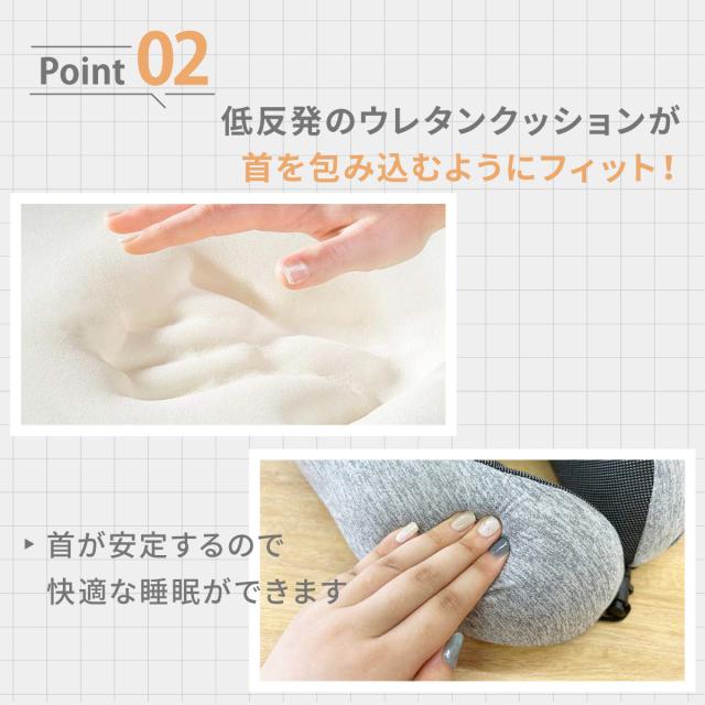 低反発のウレタンクッションが首を包み込むようにフィットし、快適な睡眠ができます。