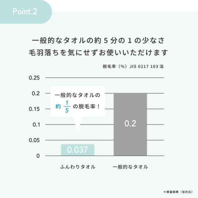 - 何回洗っても、まだまだフワフワが続いています。 ヘア用に買ったのですが、バスタオルもこのシリーズで良いと思っています。色が気持ち明るめが良かったかな〜と個人の感想です。