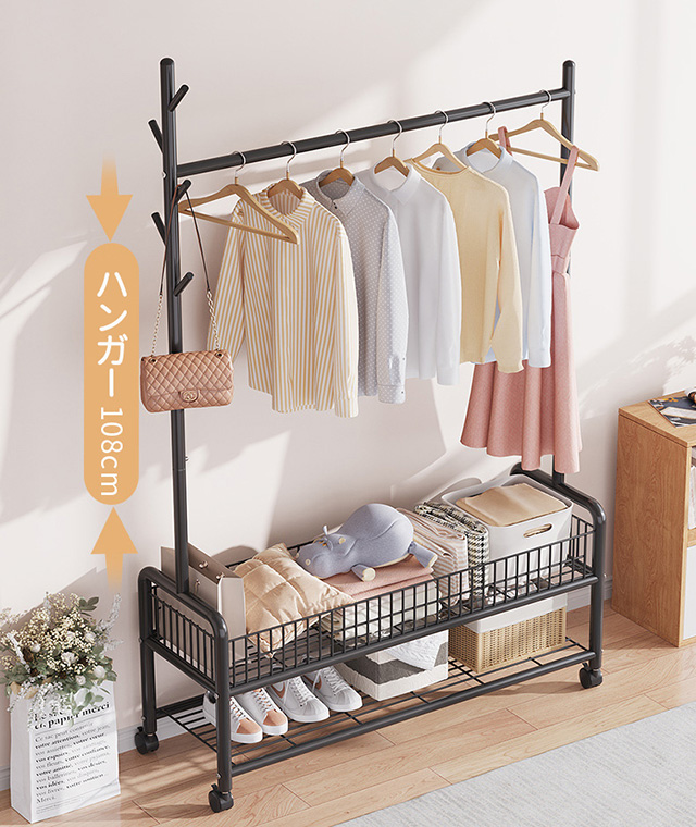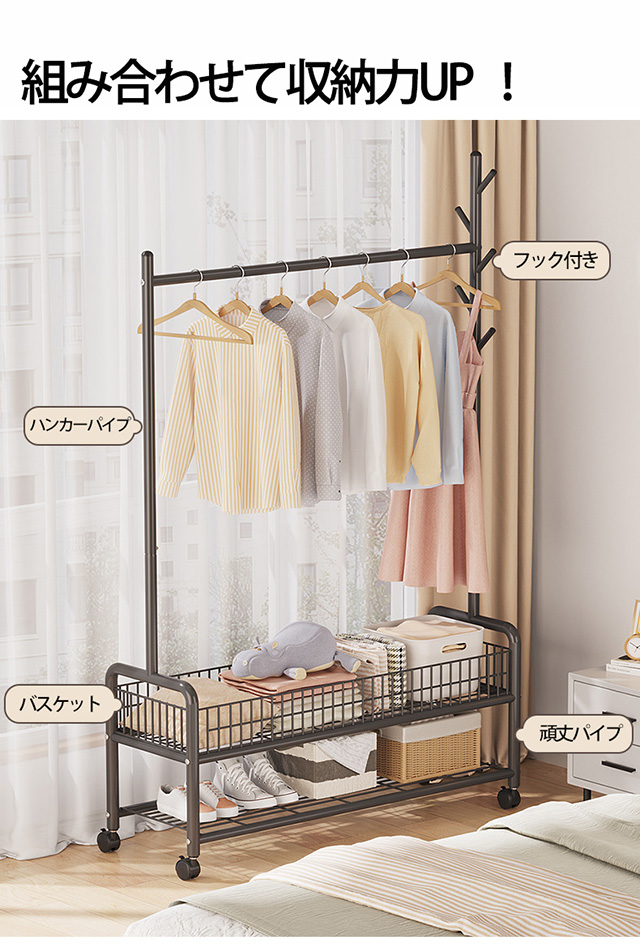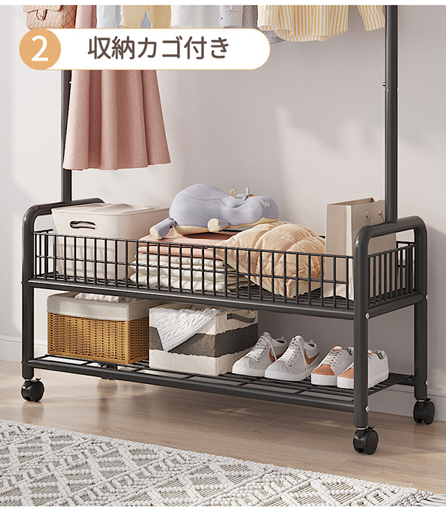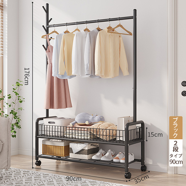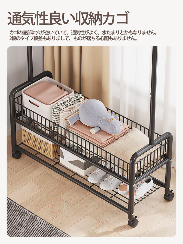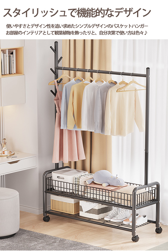 「クーポン配布中」ハンガーラック 幅60cm/90cm 省スペース 収納棚付き 収納カゴ 玄関 シンプル パイプハンガー キャスター付き 衣類収納 子供 洋服掛け 物干しハンガー コートハンガー 物干し 部屋干し 洗濯物干 北欧 一人暮らし 家族収納 新生活 おしゃれ