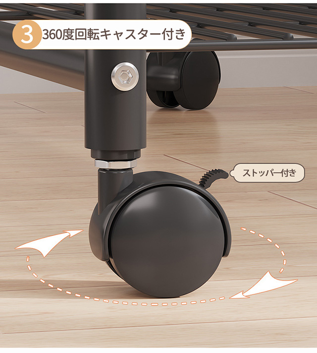 【安定性&キャスター付き】太めのパイプでしっかりと安定しています。ハンガーラック脚部にはボールタイプのキャスターを使用, 小回りが利くため、どんな方向へもスムーズな移動が可能。衣替えやお掃除のときにも移動がラクラク。錆びにくい素材でできているので、洗濯物を干すためにベランダに置いても、梅雨の日に使っても錆びることはない。