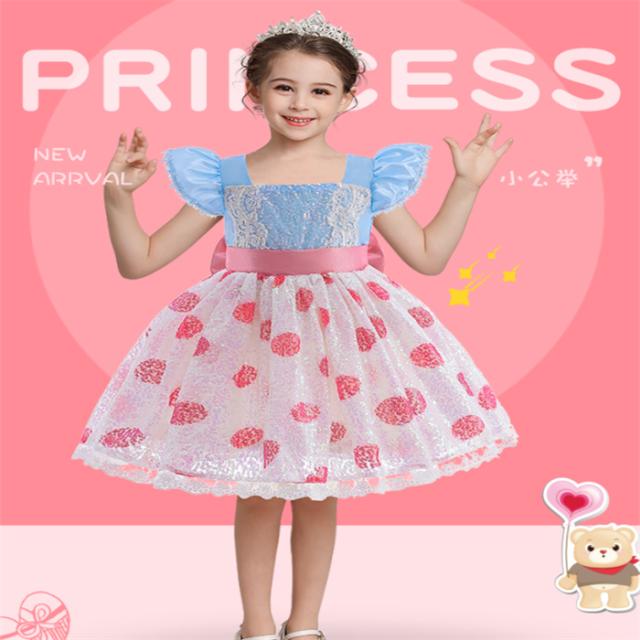 ボー・ピープ風ワンピースです。 胸元のスパンコールと刺繍風のデザインがおしゃれ。 ピンクと水玉ドットが可愛らしさ満点です。 ふんわりとしたシルエット、裏地もあり、お子様にも優しい着心地。 サイズが豊富なので、お子様の身長にピッタリ合ったサイズを選べます。 ジャストサイズで可愛い着こなしができます。
