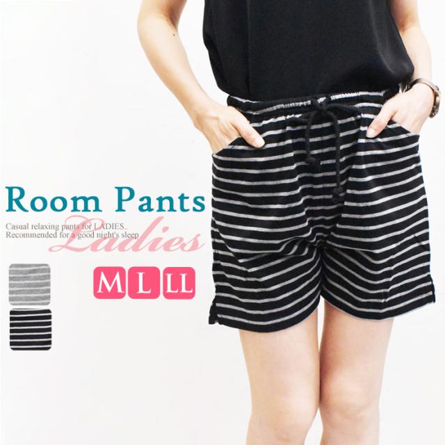 ルームパンツ レディース ショート丈 79-818 単品 送料無料 ルームウエア パジャマ 下だけ ズボン ショートパンツ 部屋着 ナイトウェア パジャマ 夏用 春夏 婦人服 ボーダー柄(06270)