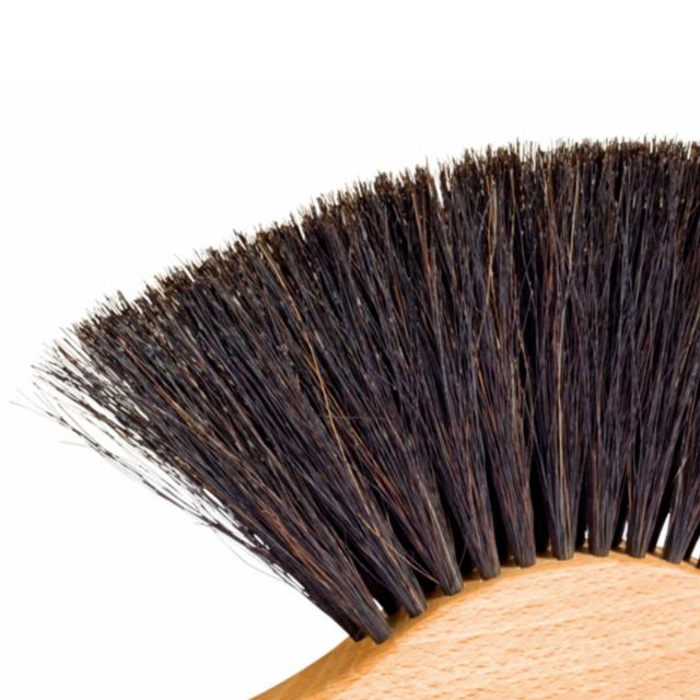 熟練の職人が丁寧に仕上げた馬毛を贅沢に使ったブラシは、柔らかで優しい肌触りです。軽く掃くだけで細かなチリまできれいに掃き出してくれます。動物の毛は静電気が起きにくく、ホコリが舞い散らないのも嬉しいポイントです。
