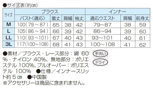 ●素材/ブラウス・レース部分:綿60%・ナイロン40%、無地部分:ポリエステル100%、インナー:ポリエステル100%