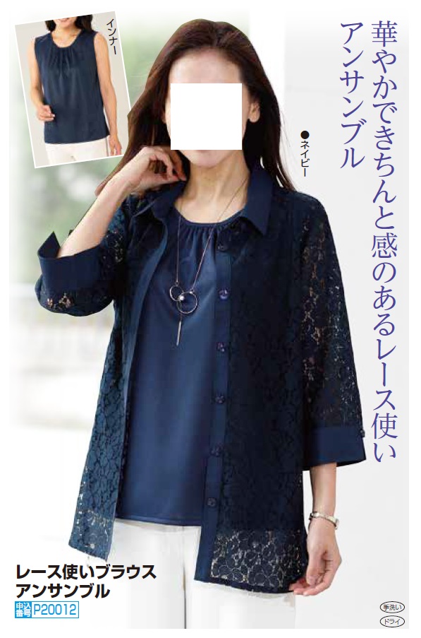 レース使いブラウスアンサンブル ネイビー レースブラウス ノースリーブ レディース 婦人服 ミセス シニア 女性 紺色 2点セット ブラウスジャケット 上品 エレガント シンプル シニアファッション 40代 50代 60代 70代 80代 母の日 お母さん 春夏 sowa p20012