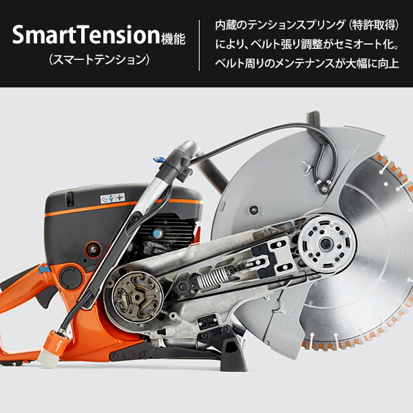 内蔵のテンションスプリング(特許取得)により、ベルト張り調整がセミオート化。