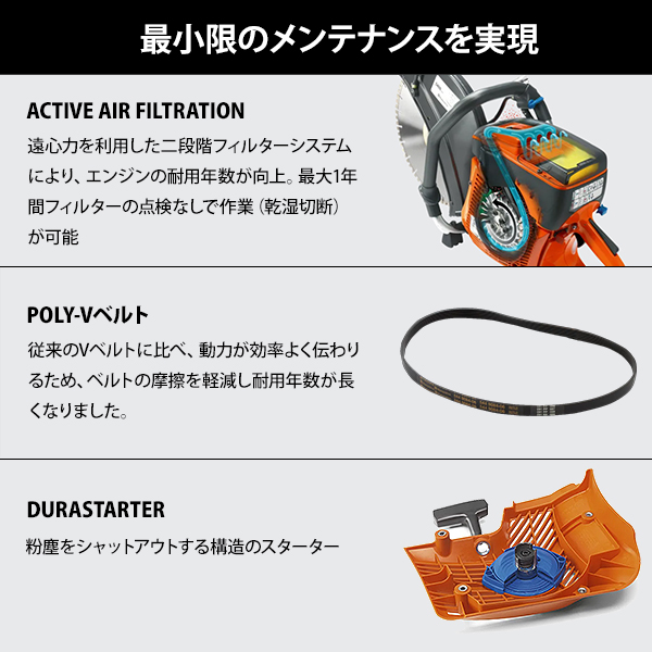 ACTIVE AIR FILTRATION / POLY-Vベルト / 密閉型スターター (DURASTARTER)