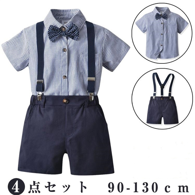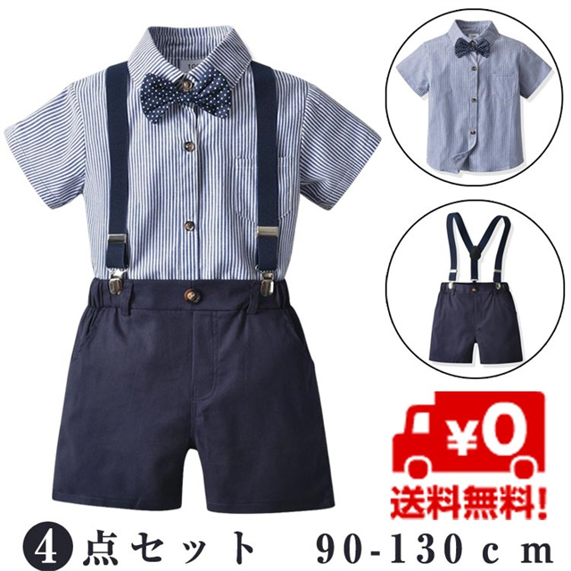 送料無料4点セット 子供スーツ 男の子フォーマル スーツ 半袖 子供服 シャツ 紳士服 上下セット 通園 七五三 卒業式 入学式 おしゃれ 結婚式 誕生日 お祝い