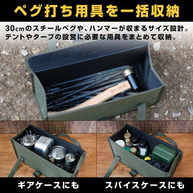 全面に補強ボードを内臓した型崩れしにくい「ペグケース」です。テントやタープ設営に必要な用具などをまとめて収納できます。