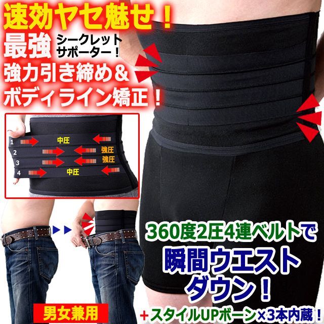 引き締め圧が違う360度2圧4連ベルトで瞬間ウエストダウン!
