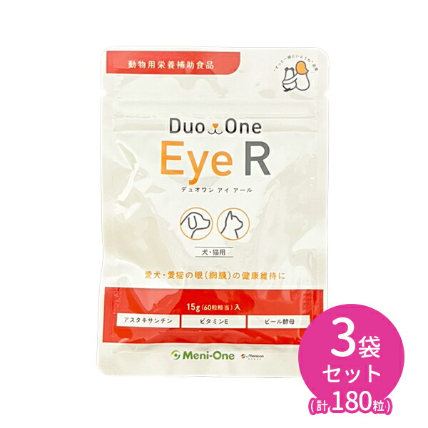 【賞味期限2026.5.31】Duo One Eye R (デュオワンアイアール) 犬猫用 60粒 3袋 合計180粒 眼 網膜 健康維持 サプリメント タブレット 愛犬 愛猫 メニワン