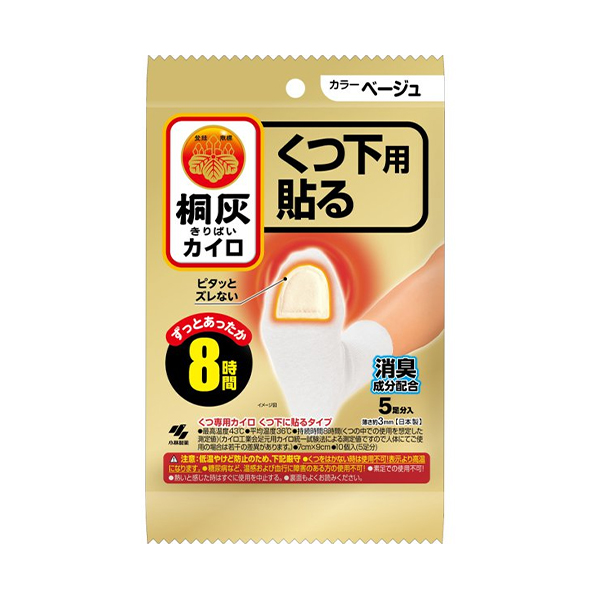 くつ下用 貼る カイロ 5足分 ベージュ 貼るタイプ 靴下に貼る 使い捨てカイロ 足用 消臭成分配合 高温 冷めにくい 屋外作業 通勤 通学 レジャー アウトドア スポーツ 寒い日 桐灰 小林製薬