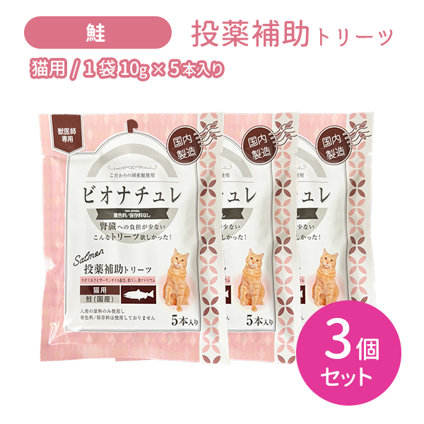 【賞味期限2027.3.31】【3個セット 合計15本】ビオナチュレ 投薬補助トリーツ 猫用 鮭 10g×5本入り 3セット おやつ 国産 国内製造 ペット やぎミルク サーモンオイル 低リン 低ナトリウム 着色料未使用 保存料未使用