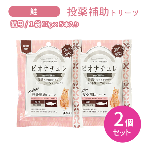 【賞味期限2027.5.31】【2個セット 合計10本】ビオナチュレ 投薬補助トリーツ 猫用 鮭 10g×5本入り 2セット おやつ 国産 国内製造 ペット やぎミルク サーモンオイル 低リン 低ナトリウム 着色料未使用 保存料未使用