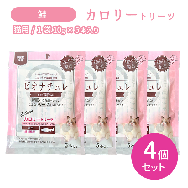 【賞味期限2027.6.30】【4個セット 合計20本】 ビオナチュレ カロリートリーツ 猫用 鮭 10g×5本入り 4セット 食欲低下 食欲不振 おやつ 国産 国内製造 ペット サーモンオイル 低リン 低ナトリウム 着色料未使用 保存料未使用 無添加 腎臓 健康維持