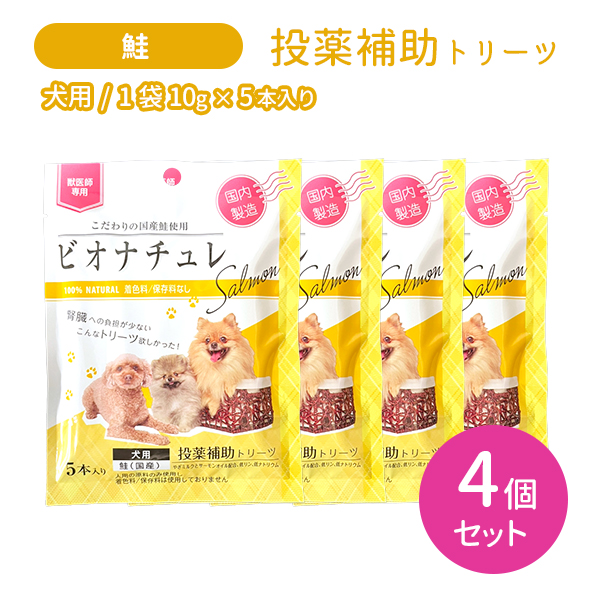 【賞味期限2026.4.30】【4個セット 合計20本】ビオナチュレ 鮭 投薬用 犬用 10g×5本入り 4セット 合計20本 おやつ 国産 国内製造 ペット やぎミルク 低リン 低ナトリウム 着色料未使用 保存料未使用